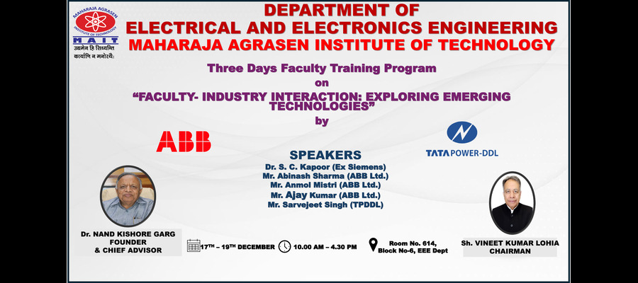Maharaja Agrasen Institute of Technology is established by Maharaja Agrasen Technical Education Society promoted by a group of well known Industrialists, Businessman, Professionals and Philanthropists with an aim to promote quality education in the field of Technology.